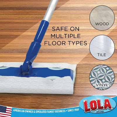 - Lola’s disposable dry sweeping floor cloths are made of an exclusive 2-ply layered material without bending or breaking.