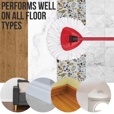 - Made from 100% microfiber, this spin mop refill is highly absorbent, capable of holding large amounts of water and floor cleaner. Designed for optimal, efficient floor cleaning, it can be machine-washed and air-dried for a fresh, clean mop head every time