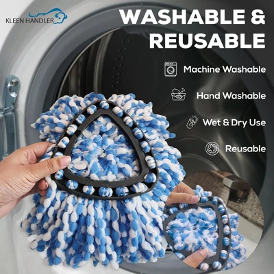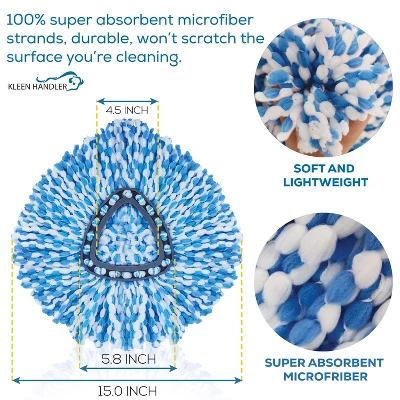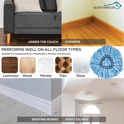 - Ideal for residential spaces such as living rooms, kitchens, and hallways, this blue and white mop refill can be used for both wet and dry mopping and dusting