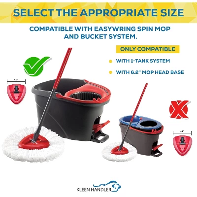 - Compatible with the O-Cedar single tank EasyWring spin mop and bucket system (sold separately), the center ring attaches quickly and easily to the mop handle. Note: This mop head is not compatible with the 2-tank system