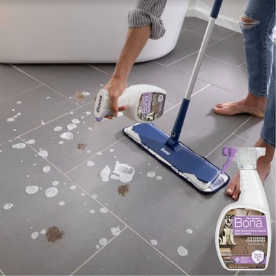 When it comes to cleaning messes made by our furry friends, look to the brand trusted by flooring professionals since 1919. Bona’s Multi-Surface Floor Cleaner, Dog Formulation offers an oxy powered solution that deep cleans and penetrates through tough stuck-on stains, tracked in mud, and accident messes with the cleaning power of hydrogen peroxide. The Odor Guard Technology eliminates and neutralizes urine and other organic odors upon contact.
