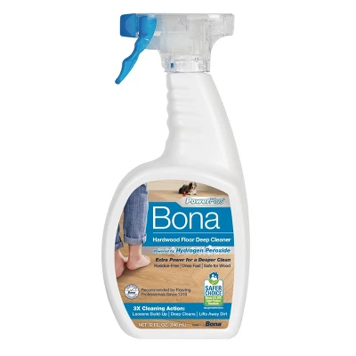 Stuck on messes and heavy build-up are no match for our deep cleaning Bona PowerPlus formula. With 3X the cleaning action and powered by hydrogen peroxide, this formula releases thousands of micro-bubbles to loosen and remove heavy dirt build-up providing a deep clean for your hardwood floors without the extra effort. Each Bona Floor Cleaner is uniquely formulated to care and protect your floor with it’s pH neutral formula. Our floor cleaners are waterbased and biodegradable, which makes our cleaning solutions safe for your floors. This product is Safer Choice Certified.