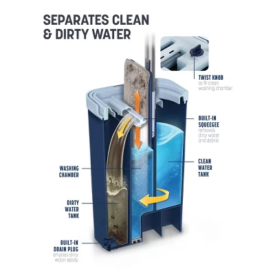 Our Casabella Flat Mop Bucket System uses divided compartments that separate the dirty water from the clean water, so you’re always mopping with clean water. When you think about it, why would anyone want to clean with dirty water? The flat mop makes cleaning easy and quick, with a 360-degree rotating head to get at corners and floorboard edges. Simply push the mop through the built-in wringing system and squeeze out the dirty water and debris to get ready to clean again with a completely clean mop. Great for any hardwood floor, laminate or tile. The mop head is made of absorbent microfiber that can be used wet or dry and is completely washable and resusable. The bucket and mop are compact and easy to store.