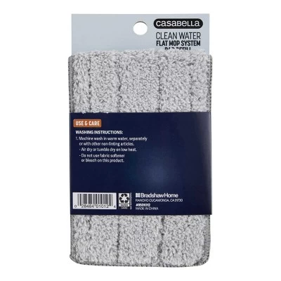 Our Casabella Flat Mop Refill is an easy to change out mop head meant to be used with our Casabella Flat Mop Bucket System. Made of absorbent microfiber, the Casabella Flat Mop Refill is deep cleaning at its best, able to cut through dirt and grime. It’s also completely washable, reusable and works equally well either wet or dry. Save yourself some money over disposables and get greener in the process–the flat mop is the way to go if you really want to get into the corners and edges with the 360-degree rotating head.