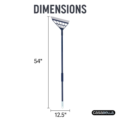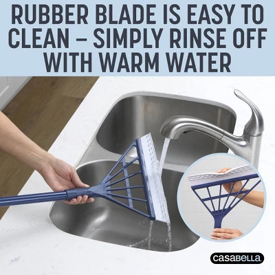 The Casabella Rubber Blade Broom is a versatile and innovative cleaning tool designed to tackle a variety of surfaces with ease. Equipped with durable, non-abrasive rubber blades, it efficiently sweeps up dust, dirt, and debris from hardwood, tile, and laminate floors, as well as carpets and rugs. Unlike traditional bristle brooms, the rubber blade creates static electricity to attract and capture fine particles, making it especially effective for pet hair removal. Additionally, its water-resistant design allows for seamless cleaning of wet messes, making it ideal for kitchens, bathrooms, and even outdoor spaces like patios and garages. Easy to clean and long-lasting, this broom is a must-have for effortless, all-purpose cleaning