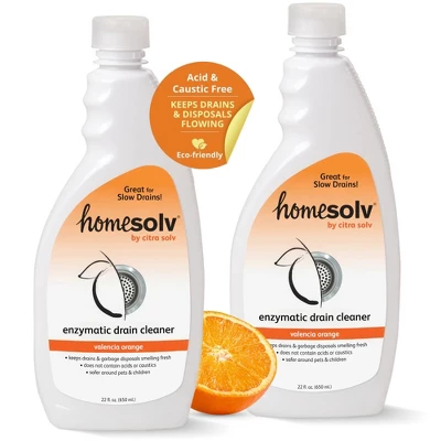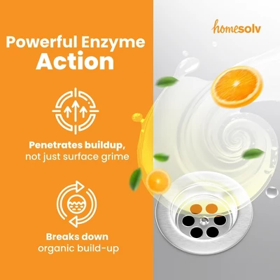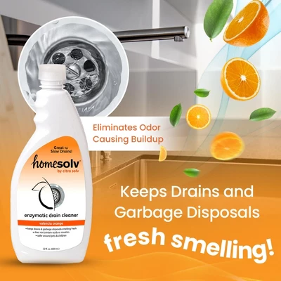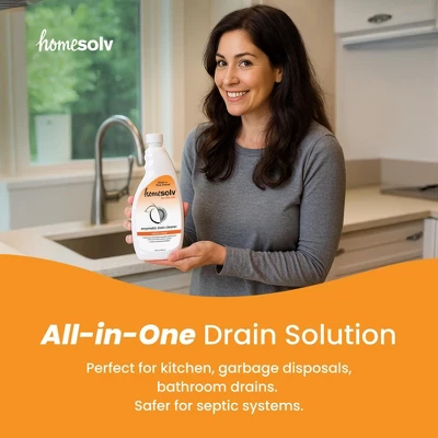 Named Best in Category. HomeSolv Enzyme Drain Cleaner: The enzymes dispose of organic substances to safely eliminate drain-clogging build-up in your pipes, while keeping drains and garbage disposals smelling fresh. Perfect for most organic blockages, including grease, oil, soap residue and more. Does not contain acids or caustics, so it is safer around pets & children. Safe for septic systems.
