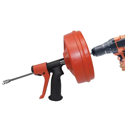 DrainX manufactures quality drain cleaning equipment for both do-it-yourselfers and professionals. The SPINFEED 50-Ft. Drain Snake is encased in a drum manufactured of a heavy-duty polymer. The 2-way automatic feed function allows you to retract and extend the cable easily and without getting your hands dirty. This function works speedily, especially with a drill. The steel snake is driven by drill power, or you can operate it manually without a drill. The cable is 1/4-in. in diameter for use with 1-1/4-in. to 2-in. pipes. The snake is fully bendable and flexible, which makes it ideal for traps, S, or L pipes. Use it for bathtub drains, bathroom drains, shower drains, and kitchen sinks. Toilet use is not recommended as the snake might damage the porcelain and it may get twisted inside the large diameter of the toilet drain. This drum auger snake comes with a pair of work gloves and a carrying bag.