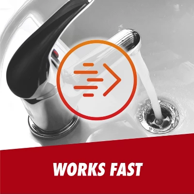 - • Commercial strength drain unclogger starts working in as little as seven minutes