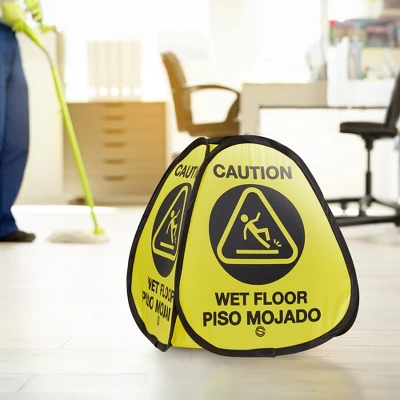 The Dryser Pop-up Caution Wet Floor Sign offers several key features that make it an ideal safety solution for restaurants, commercial establishments, and industrial environments. Its high visibility, yellow and black, pop-up design, and durable nylon construction ensure that it effectively communicates the warning message and stands up to demanding conditions. The inclusion of bilingual messaging enhances its usability in diverse populations, while its versatility allows for its usage in various industries and settings. By using this wet floor sign, businesses can prioritize safety and reduce the risk of potential slip-and-fall hazards. Dryser elevates traditional cleaning equipment with smarter designs and unique benefits, without sacrificing value. Contains 3 pop-up signs. Open dimensions: 16” high x 14.25” wide. Folded dimensions: 6” in diameter x 1” high.