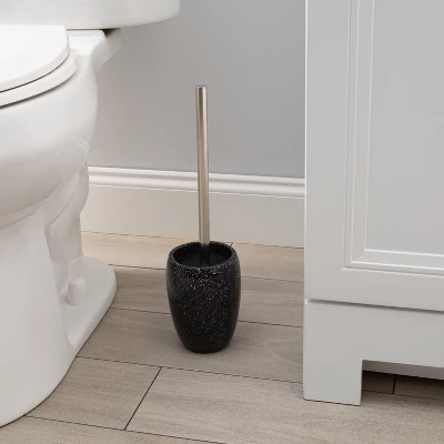 Store your toilet brush in plain sight with the attractive Elle Decor Toilet Brush Set. This brush and decorative storage container is discreet and will make a lovely accent to most bathroom decors. The handle and canister for the bathroom toilet brush have a slick finish. The set also has a durable, rounded, bristle brush that is designed to remain hidden when the product is not in use. This toilet brush will keep both your bathroom and toilet looking their best.
