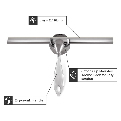 Zadro’s Z’Fogless™ Ergonomic Squeegee is simple, sleek and easily cleans any shower or glass surface. With a 12” blade and ergonomic handle it is designed to make wiping away those water splashes a flawless task. The chrome and glass finish adds to the high quality design, while still making it ideal for multi-purpose use – cleaning windows, shower doors and tiles, to name a few. The chrome suction cup mount allows the squeegee to be hung and stored on any smooth surface.