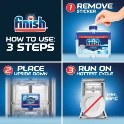 - It’s better protection against limescale stains vs. dishwasher detergent alone with 3 actions: rinses, dries and shines