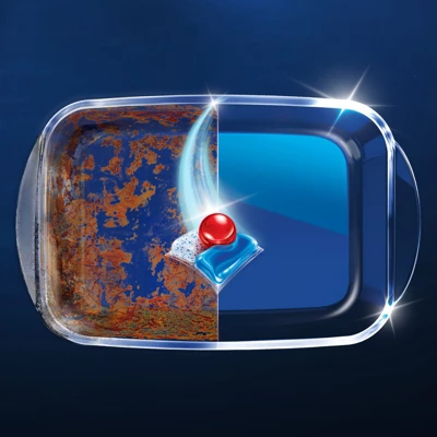 - Powder: scrubbing power to break down and remove toughest stuck on food in one wash