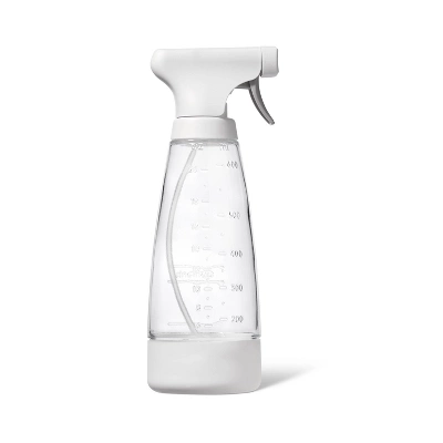 This Glass Reusable Cleaning Spray Bottle from Everspring™ makes it easy to keep any of your most-used cleaning sprays close at hand and ready to use. Made from glass with a plastic nozzle head, this BPA-free reusable cleaning spray bottle features convenient volume markings on the body. Great for storing glass cleaners, multi-surface cleaners and much more, the reusable design helps reduce waste.