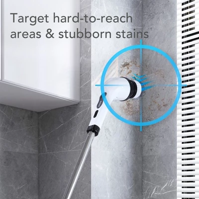 - 2-SECTION HANDLE – The adjustable length of the handle provides an extended reach, allowing you to easily access hard-to-reach areas. No more bending and stretching during cleaning with this electric scrubber