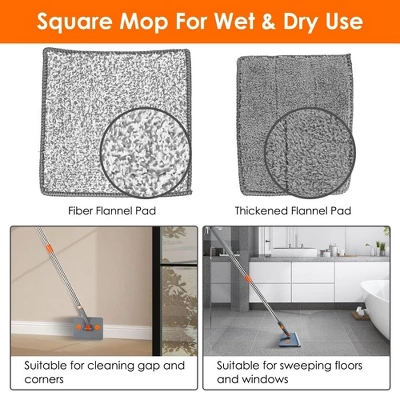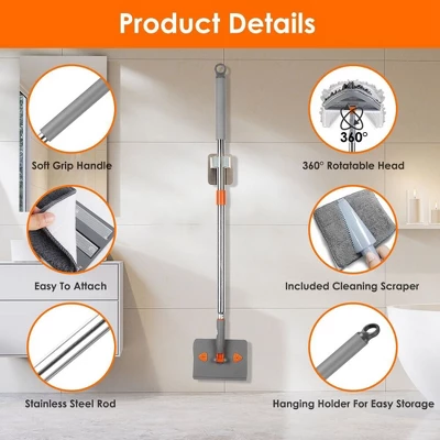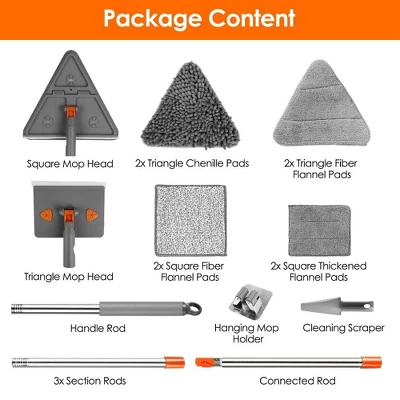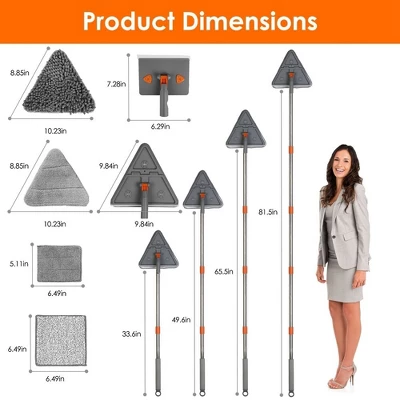 This all-purpose dry & wet cleaning mop simplifies tackling hard-to-reach spots with its 180° vertically/horizontally rotatable head—effortlessly cleaning corners on walls, ceilings, floors, windows, and more, indoors or outdoors. It comes with 5 rustproof stainless steel sections to assemble a handle that adjusts (81.5in–33.6in for square heads, 78.7in–30.9in for triangle heads), so you skip ladders and bending. The updated design boosts performance too: the square head’s convex shape targets corners/edges (great for baseboards/wallpaper), while the triangle head’s 90° flip panel picks up dust/pet hair. You get 8 reusable pads (chenille for dry dusting, fiber flannel for wet mopping/windows) plus a cleaning scraper and hanging holder—machine-washable pads and easy storage keep maintenance simple.