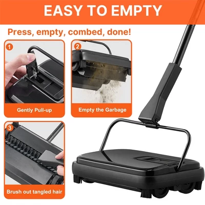 - Quick & Quiet Manual Operation: No electricity or batteries required; simply push back and forth to sweep dirt into the built-in dustpan—operates quietly to avoid disrupting your space, with minimal effort for impeccable results.