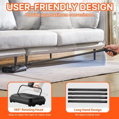 - User-Friendly Ergonomic Design: 180-degree rotating head reaches hard-to-access areas (under sofas, coffee tables, beds); extended handle eliminates the need to bend over, reducing strain during use.