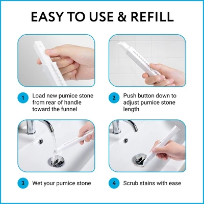 - Secure, Refillable Handle: Each thin pumice stick measures 0.5 x 7.75 inches and features a reinforced adjustable handle that locks the pumice chisel firmly in place, preventing slipping while scrubbing