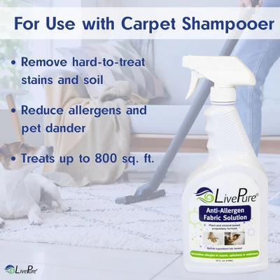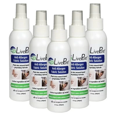 - LivePure Anti-Allergen Fabric Spray uses a plant and mineral-based proprietary formula to remove the proteins that cause irritating symptoms in your living space.