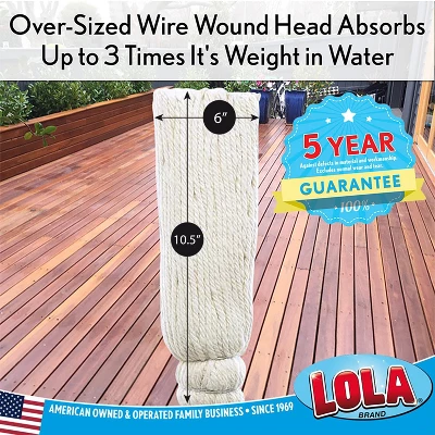 Lola Products 12 Oz. Cotton String Wet Mop features a wire-wound head, providing heavy-duty, durable, and super-absorbent cleaning power. Capable of absorbing up to 4x its weight in water, this mop is perfect for tackling tough floor cleaning tasks. The cotton string construction ensures effective and efficient cleaning, making it ideal for both residential and commercial use. Its robust design guarantees long-lasting performance, making it a reliable choice for all your wet mopping needs.