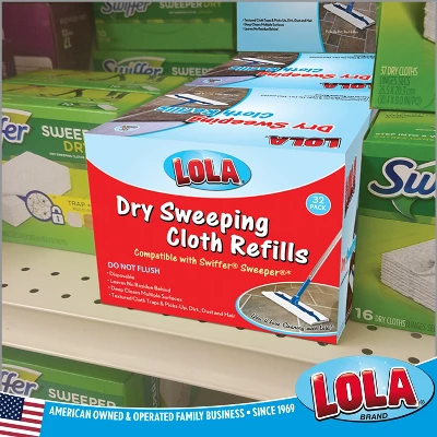 - Lola’s disposable dry sweeping floor cloths are made of an exclusive 2-ply layered material without bending or breaking.