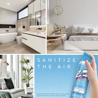 - ELIMINATES ODORS*: Bad smells can be caused by odor causing bacteria. Use Lysol Air Sanitizer Spray to eliminate 99.9% of viruses and bacteria* in the air. (*Use as directed).