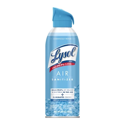 - SANITIZE THE AIR THROUGHOUT YOUR HOME: Lysol Air Sanitizer Spray sanitizes and eliminates 99.9% of odor causing bacteria* in the air. Enjoy the cotton blossom scent. (*Use as directed).