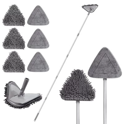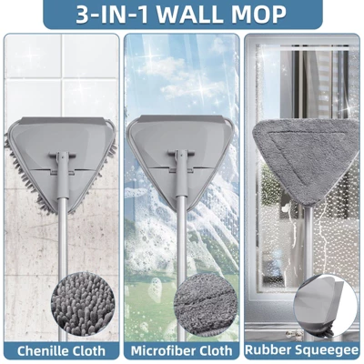 - Wet & Dry Wall Mop: The wall cleaning mop set is equipped with 3 chenille mop cloths, and 3 microfibre mops, you can reuse the pads. The microfiber mop pads with strong dust adsorption are perfect for picking wastes, hair removal, and other dry cleaning. The strong absorbent chenille mop pads and rubber wiper strip are more suitable for window cleaning, floor cleaning, and another wet cleaning.
