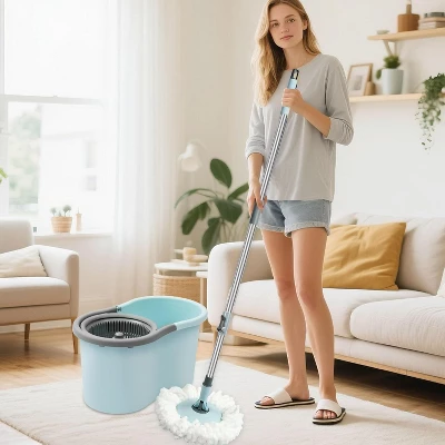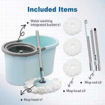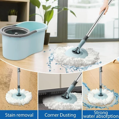 - This mop and bucket set includes 3 machine-washable microfiber mop heads designed for deep cleaning floors, effortlessly removing hair, dust, and stains with just water. 360° microfiber spinning mop head easily reaches any difficult corners and gaps without feeling the scrape. This spin mop is suitable for cleaning a variety of floor surfaces and can also be used on windows , tiled walls, or wood walls