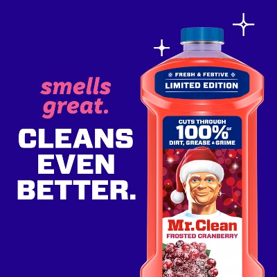 Mr. Clean’s 2X Concentrated* All Purpose Cleaner muscles through 100% of dirt and grease for powerful, multi surface cleaning. This floor cleaner for mopping is great for cleaning linoleum, tile & hardwood floors**. Use Mr. Clean all purpose cleaner as a bathroom cleaner to clean toilets, sinks, and bathtubs. It makes cleaning your house that much easier and leaves the long lasting freshness of Frosted Cranberry scent behind. Add Mr. Clean to your arsenal of cleaning supplies today! *vs. Mr. Clean Original **use diluted only