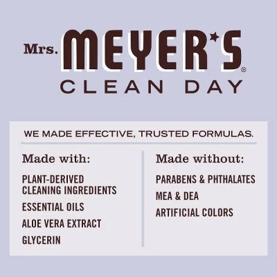 Mrs. Meyer’s Clean Day liquid dish soaps are specifically made to make grease disappear, while also providing a special, singular scent for your home. Lavender has long been prized for its original and clean floral scent. Such a pretty and reassuring herb! Our biodegradable formula dish liquid cuts through grease and is designed for hand washing dishes, pots, and pans. The liquid dish detergent contains plant-derived cleaning agents and other thoughtfully chosen ingredients that make dishes clean and bright. It’s a Dish Soap made without parabens, phthalates, or animal-derived ingredients. And of course, this is a cruelty-free formula product. Packaging contains recycled content. Bottle (less cap) is made with at least 30% post-consumer plastic. Also available in other garden-inspired scents and products such as Hand Soap and Multi-Surface Cleaner. Mrs. Meyer’s – Rooted in Goodness.
