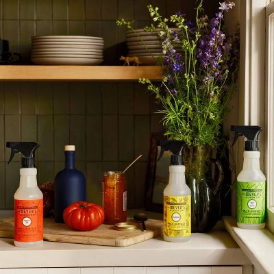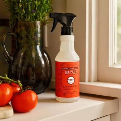 Mrs. Meyer’s Clean Day Multi-Surface Everyday Cleaners feature hard-working yet gentle multi purpose cleaning agents, while also providing a special, singular scent for your entire home. Tomato Vine cleaner is a special summer surprise.The ripe smell of Tomato Vine is slightly earthy & subtly sweet, and cuts through with its herbaceous tang & burst of brightness. We combine garden inspired scents, essential oils, and plant-derived multi purpose cleaning ingredients to clean kitchen messes and all over the house. Our cleaning spray is great on all non-porous surfaces such as finished wood and tile floors, Countertops, walls, porcelain, bathroom fixtures, sealed natural and synthetic stone, and more. Packaging contains recycled content. Bottle (less trigger) is made with at least 30% post-consumer plastic. Available in other garden inspired scents and biodegradable products such as dish soaps and laundry detergents! Mrs. Meyer’s – Rooted in Goodness.
