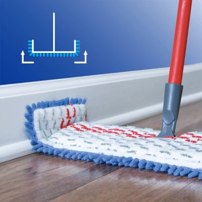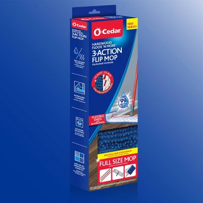 Ideal for hard floor surfaces, the O-Cedar® Hardwood Floor ‘N More® 3-Action Mop is designed for dry or wet mopping with a reusable and washable double-sided mop head. The two sides of its unique flexible mop head flip up to clean and dust baseboards, without using your hands. Great for dusting floors with an ultra-dense chenille side to capture dirt, dust and hair, while its microfiber side is perfect for damp mopping. Plus, it removes over 99% of bacteria with just water.*
