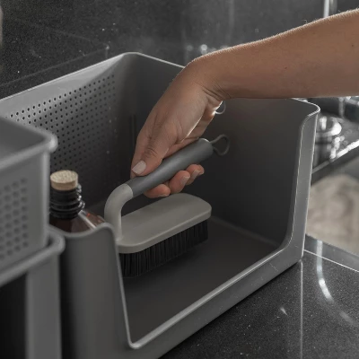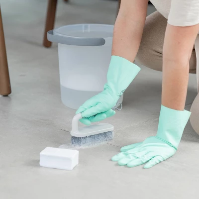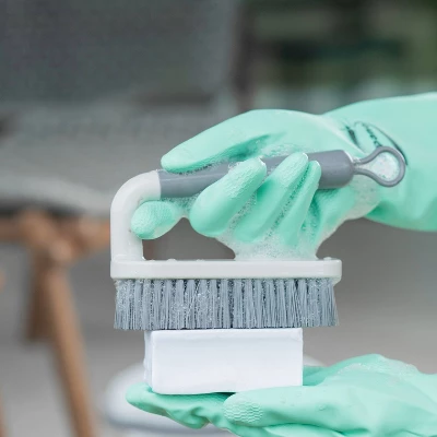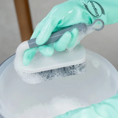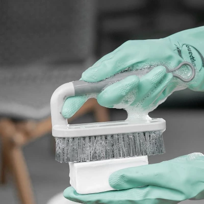 - Built-In Scraper Edge: This bathroom and kitchen cleaning brush includes a rigid edge that scrapes off dried spills, hardened soap scum, and sticky residue, prepping surfaces for a deeper scrub without damaging them.