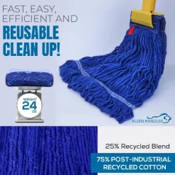 Bison Life Heavy Duty Loop End Wet Mop Head Replacement Refills, 5″ Headband, Blue – 3 Pack
