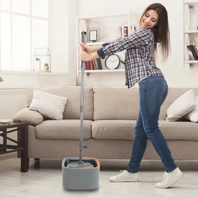 Clean And Sewage Water Separation*:Featured with an innovative inner bucket,separates clean water from dirty water,maintaining the cleanliness of the water used during mopping. You can consistently mop with fresh water without worrying about spreading dirt back and reduce the frequency of changing water. *360¡ãSpinning Mop Head*:360¡ã Rotating mop head allows to glide smoothly around furniture legs,underneath low-clearance spaces and into tight corners,providing a thorough clean every time. Moreover,high-speed spinning system makes mop cleaning fast and effortless. *Height Adjustable Stainless Steel Mop Rod*:Constructed from premium stainless steel,mop rod is rustproof and corrosion-resistant. Adjustable length from 47.24in to 51.18in,perfectly fit for people of different heights. Care for your back and waist. *Easy To Drain*:Detergent inlet makes it simple to add cleaning solutions without spills or messes,while the sewage outlet quickly and conveniently discharges waste water. Designed with scraping teeth on the bucket,remove hair,dirt,and debris from the mop head,eliminating the need to clean the dirt off the mop with your hand. *Suitable For Dry & Wet Use*:Microfiber mop pad can easily and fully capture wet or dry dirt and absorb pet fur,hair,debris,dust,oil or other stubborn stain. Suitable for most smooth floors,such as vinyl floors,wooden floor,bamboo floor,glass floor,stone floor,ceramic tiles floors.
