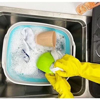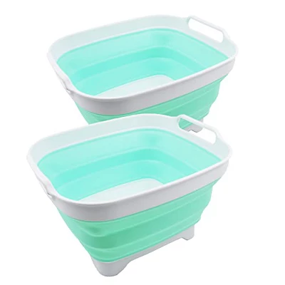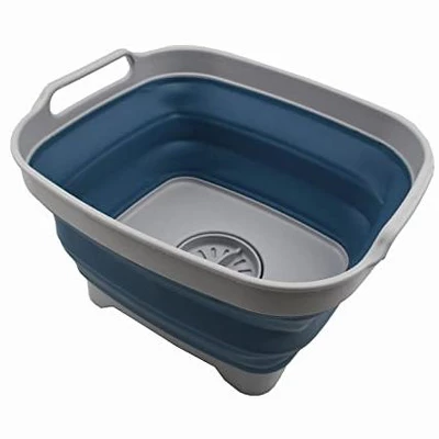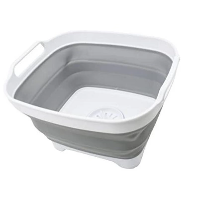 Details: **Collapsible Dishpan with Draining Plug **Brand: SAMMART **Material: TPE & PP **Expanded size: 13 x 10.7 x 7.8(h) inches **Collapsed size: 13 x 10.7 x 2.6(h) inches