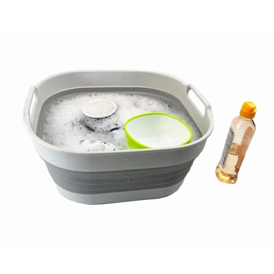 - 10L Collapsible Tub: Space saving with Expanded size 14 x 13 x 6.7 (h) inches and its height just 2.6 inches after folds, save over 70% space when storage.