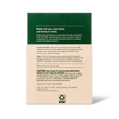 Infuse your home with a woodsy and welcoming aroma with this Cedar & Balsam Scented Oil Refills 2-Pack from Everspring™. Designed for use with most standard scented oil devices, including Airwick and Glade warmers, this two-pack of essential oil blends boasts a warm, soothing cedar and balsam aroma to freshen the air in your home. Why not bring the outdoors in. The oil blend features 100% natural fragrance and is not tested on animals.
