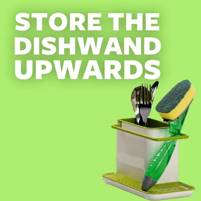 - CONVENIENT DESIGN: The dishwand dispenses dish soap, includes a built-in scraper for stuck-on food, and stands upright for cleaner storage and faster drying