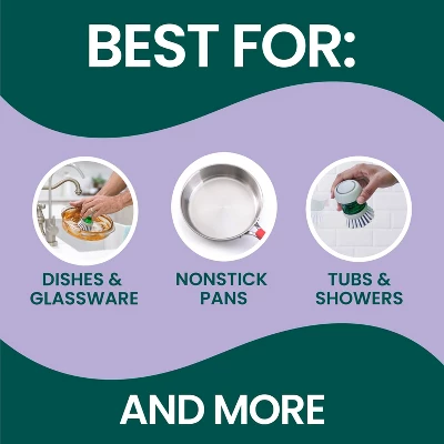 - BUILT-IN SOAP DISPENSER: At the press of a button, the Scotch-Brite Odor Resist Soap Dispensing Palm Brush dispenses soap directly onto the surface