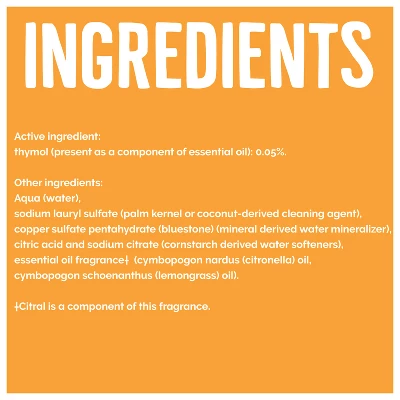- Botanical disinfectant with the active ingredient Thymol (a component of Thyme Oil)