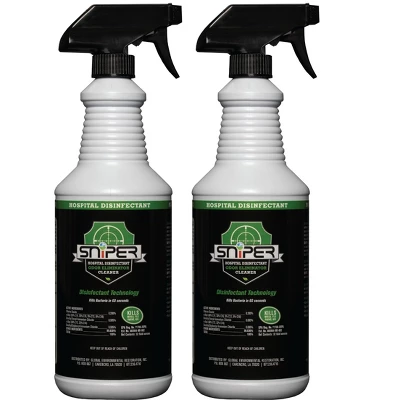 SNiPER Hospital Disinfectant and All-Purpose Cleaner is ideal for use on a variety of surfaces to help combat odors and clean. Versatile and noncorrosive, it may be used on a wide range of surfaces and environments, including kitchens, schools, hospitals, hotels, public areas, and restaurants. Spray and walk away — no wiping required. This disinfectant, deodorizer, and all-purpose cleaner may be used in commercial, industrial, and residential areas.
