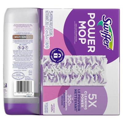 - Includes 5 PowerMop Multi-Surface Mopping Pad Refills and 1 25.3 fl oz bottle of Swiffer PowerMop Floor Cleaning Solution, Lavender Scent