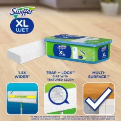 - Swiffer Heavy Duty Mopping Cloths now have 75% More Scrubbing Power.* They are pre-moistened with a cleaning solution that bonds with dirt to trap it deep in the cloth’s core, so it can’t be re-released onto your floor as you clean. *scrubbing strip area vs Swiffer Wet mopping cloth