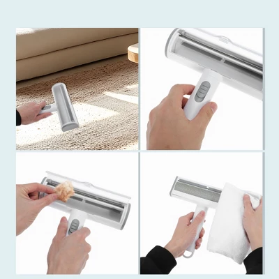 Item Function: 1. Utilize the fine-quality polyester bristles of this pet hair removal tool for effective hair removal without damaging fabrics. The gentle scraping action ensures efficient pet hair elimination, providing a hassle-free cleaning experience that protects your belongings. 2. Featuring a large capacity storage box for easy cleaning, this carpet rake simplifies the hair disposal process. With a press of a button, you can effortlessly remove collected hair. The handle’s hanging storage hole allows for space-saving placement when not in use, enhancing convenience and organization.3. The sustainability of this lint roller is that can be washed and reused. After use, a simple rinse with water and air drying enables multiple uses, promoting eco-conscious practices and cost-effective cleaning solutions. 4. Equipped with two 8cm silicone electrostatics adsorption sheets on the brush head, this pet hair remover effectively cleans without static electricity. The silicone sheets enhance cleaning efficiency, ensuring thorough pet hair removal with optimal results. 5. Ideal for multiple surfaces such as sofas, carpets, blankets, bedding, and cat trees, this compact and portable dog hair remover offers convenience on the go. Its small size allows for easy transport, making it a practical choice for both home and travel use. Specifications: Color: Light Gray; Material: Plastic, Polyester Yarn; Size: 20x19x4cm / 7.87″x7.48″x1.57″(L*W*H); Package List: 1 Pc Pet Hair Removal Tool.