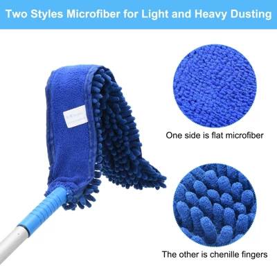- The duster offers two styles of microfiber for both light and heavy dusting needs