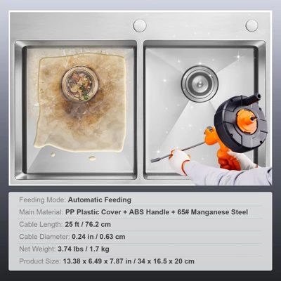 Multifunctional Drain Cleaner: VEVOR handheld plumbing snake drain auger offers good versatility and cost effectiveness, quickly clearing debris from the most stubborn drains such as tea, peel, food residue, paper, bone, hair, and clothing unclogged in toilets, sewers, floor drains, sinks, pipelines, bathtubs.