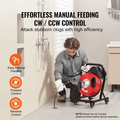 Attack Stubborn Clogs: VEVOR drain cleaner machine features a manual feeding control system, allowing you to control the feed speed and force manually. Enhanced with CW/CCW control and air-activated foot switch, managing the cable becomes more effortless